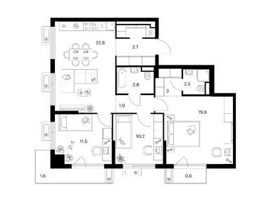 два детских сада и подземный паркинг - это были основные моменты в пользу этого проекта, поэтому взяли трешку, думаю, что не прогадали