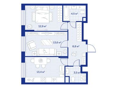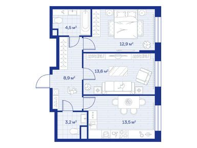 2-комн. кв, 55.90 м