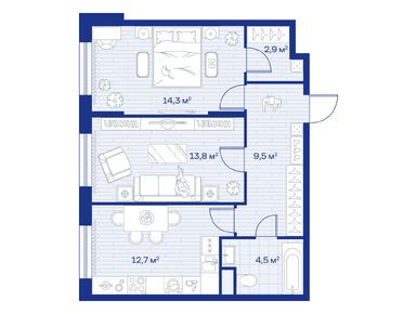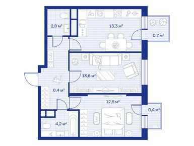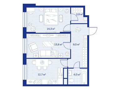 2-комн. кв, 57.90 м