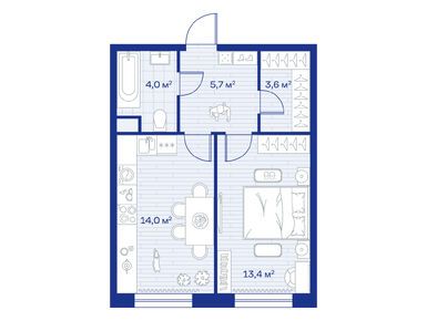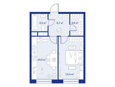 1-комн. кв, 41.40 м