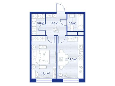 1-комн. кв, 38.60 м
