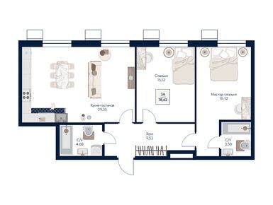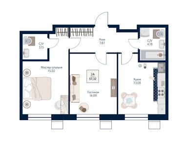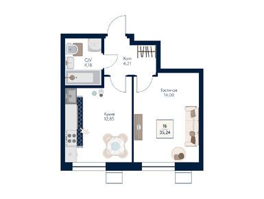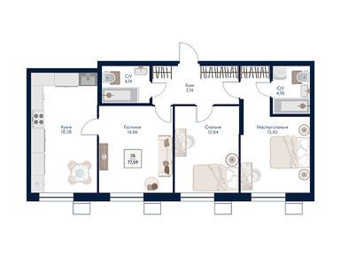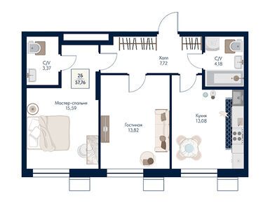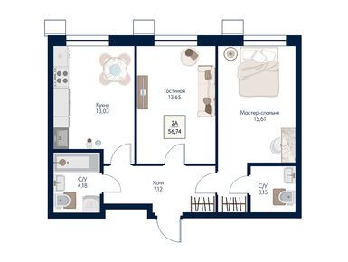 Всего в проекте запланировано 728 квартир, среди которых разнообразные планировки — от студий до трехкомнатных. Самые компактные лоты имеют площадь 28-29 кв. м., площади двухкомнатных квартир начинаются от 56 кв. м., а самая большой из имеющихся в продаже лот — трехкомнатная квартира распашного типа — имеет площадь 91,4 кв. м. В квартирах «семейного» формата предусмотрена просторная кухня или кухня-гостиная, дополнительный санузел и места для организации хранения.