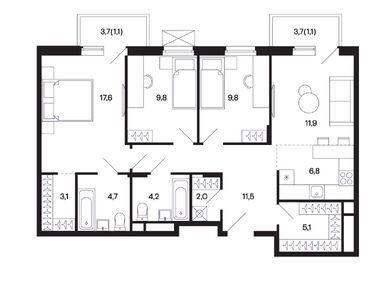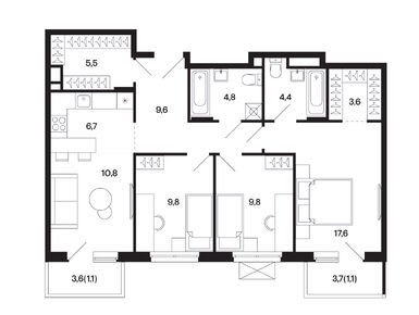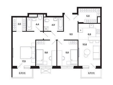 Квартиры в комплексе «Базаева 11» продаются без отделки: в них нет перегородок, что дает возможность для реализации любых нестандартных интерьерных идей. Высота потолков в лотах достигает 4,22 метра.