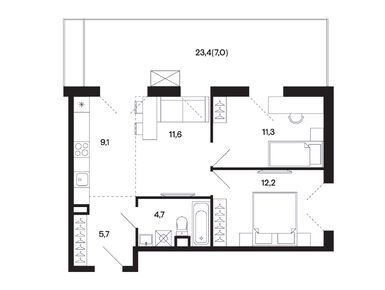 2-комн. кв, 71.00 м