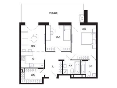 2-комн. кв, 66.00 м