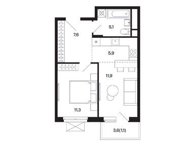 1-комн. кв, 35.40 м