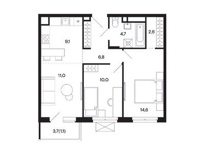 3-комн. кв, 88.70 м