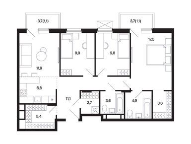 Планировки трехкомнатных квартир в ЖК «Базаева 11»