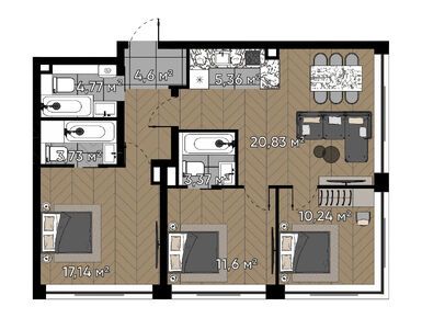 В середине июля 2024 года покупателям предлагались квартиры от студий площадью 19,4 кв. м до 3-комнатных евроформата площадью 97,1 кв. м. Есть варианты с террасой, с угловым остеклением. Во всех квартирах — окна в пол.