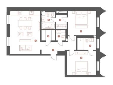 В продаже представлены лоты площадью от 83 до 329 кв. метров. Помимо классических планировок и пентхаусов здесь также предлагается формат апартаментов с отдельным входом: двухэтажные таунхаусы площадью 250 кв. м с 3-метровыми потолками. Недвижимость продается сразу с дизайнерской отделкой, без мебели (ее можно заказать также у застройщика за отдельную плату). Даже в самых небольших лотах – от двух санузлов, панорамные окна, большие кухни-гостиные, высота потолков варьируется от 3 до 4,5 метра.