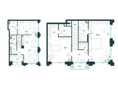 На первых этажах корпусов B и C появятся по-настоящему эксклюзивные двухуровневые ситихаусы, которые одновременно могут стать уютным жилым пространством и рабочей студией с отдельным входом. Площадь ситихаусов от 130 до 191 кв. м, доступны варианты с балконами и патио.