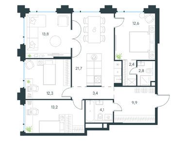 Планировки четырехкомнатных квартир в Level Бауманская