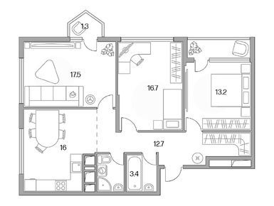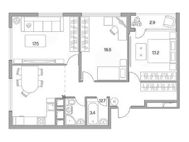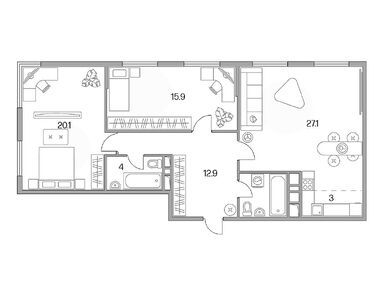 Площадь лотов в продаже (июнь 2024 года) — от 28,1 кв. м до 95,8 кв. м. Самая компактная квартира — студия, в самой большой есть три комнаты и кухня-гостиная. Жилье продается без отделки, купить квартиру можно от 6,9 млн рублей (цена указана на середину июня 2024 года).