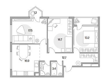 Планировки трехкомнатных квартир в ЖК «Бригантина»