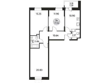 Планировки трехкомнатных квартир в ЖК «Дом на Сиреневой»