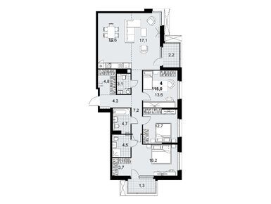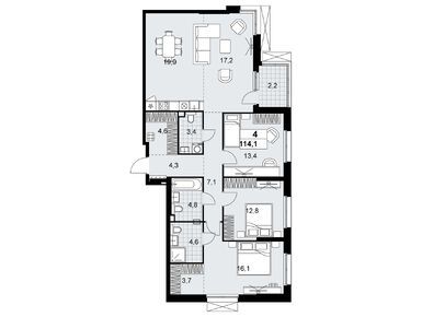 Планировки пятикомнатных квартир в ЖК «Дзен-кварталы»