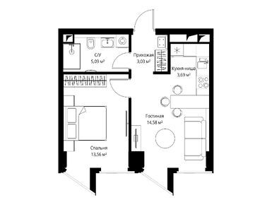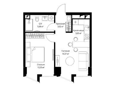 1-комн. квартира 38,20 м2 32 298 100