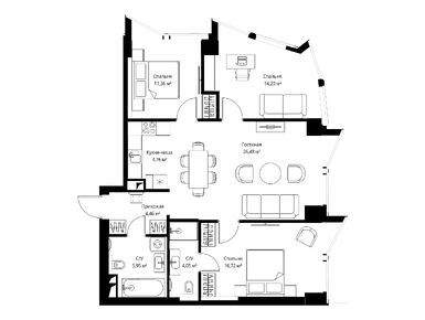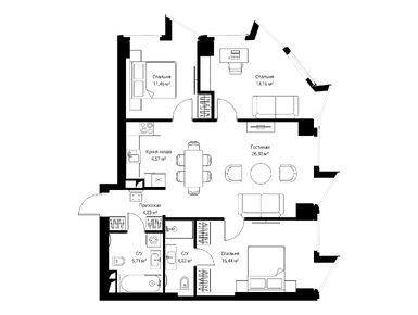 3-комн. квартира 86,80 м2 61 845 000