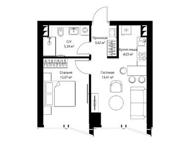 1-комн. квартира 40,20 м2 34 332 810