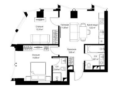 2-комн. квартира 59,70 м2 43 386 975