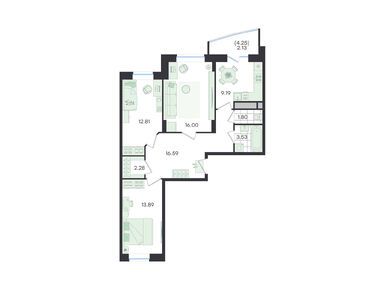 На выбор предлагаются одно-, двух- и трехкомнатные квартиры. Практичные планировки включают в себя остекленные лоджии, отдельные гардеробные, просторные спальни с видом на лес, детские комнаты и раздельные санузлы. Некоторые лоты имеют угловое остекление балконов, благодаря чему отсюда открывается красивая панорама на природное окружение. Ощущение простора и комфорта дополняют высокие потолки от 2,72 метра.