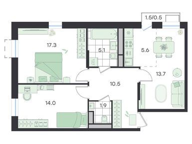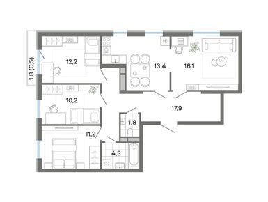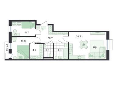 Сейчас официальный сайт ЖК «G3 Театральный» предлагает выбор из 41 квартиры (все данные в комментарии актуальны на 11 декабря 2023 года). Пока доступны только студии, одно- и двухкомнатные варианты, однако в доме запроектированы и квартиры с четырьмя комнатами. Самое бюджетное предложение – студия без отделки площадью 28,8 кв. м. Она продается за 4,9 млн рублей. Самый дорогой лот – двухкомнатная квартира с двумя санузлами, кухней площадью 12 кв. м и балконом. Она сдается с готовой отделкой (в одном из двух стилей на выбор) и стоит 12,1 млн рублей. Ее площадь – 68,3 кв. м.