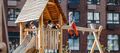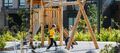 В проекте есть двор-парк с местами для отдыха, детскими и спортивными площадками. На первых этажах открыты магазины, кафе и другие сервисы.