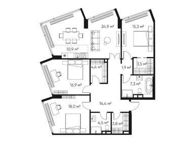 Планировки многокомнатных квартир в ЖК High Life (Хай Лайф)
