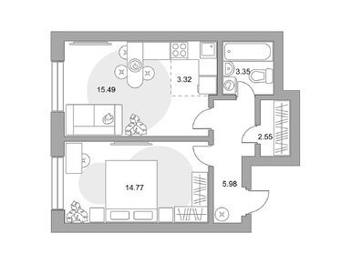 1-комн. кв, 32.80 м