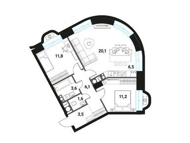 3-комн. квартира 64,40 м2 31 107 623
