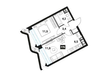 2-комн. квартира 37,50 м2 21 504 965
