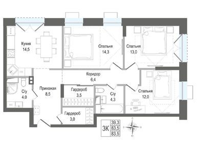 3-комн. кв, 83.50 м