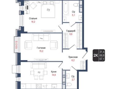 2-комн. кв, 66.70 м