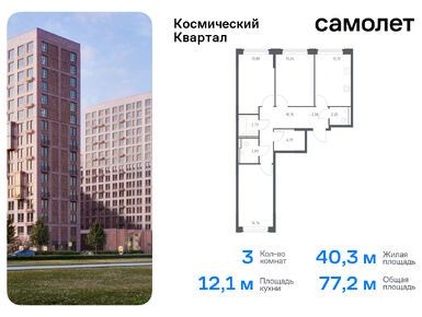 Квартирография ЖК «Космический квартал» включает в себя разнообразные планировочные решения — от студий до трехкомнатных квартир. Площадь самых маленьких лотов составляет 22,3 кв. м. А самый просторный вариант с тремя изолированными комнатами, тремя санузлами и вместительной гардеробной имеет площадь 79,1 кв. м. В многокомнатных квартирах окна могут выходить на одну сторону или на две противоположные стороны.