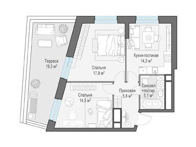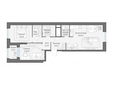 · «Евродвушки» и классические двухкомнатные квартиры различной формы, в том числе со скошенными углами, трапециевидные, с квадратными или вытянутыми комнатами;
