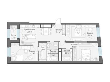 · Трехкомнатные квартиры распашные, линейные и угловые;