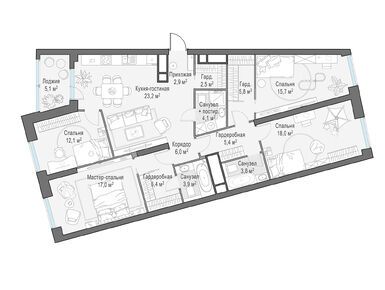 Есть варианты с балконами, лоджиями, окнами в ванных, мастер-спальнями, гостевыми санузлами и другими функциональными элементами. Все квартиры реализуются без отделки.