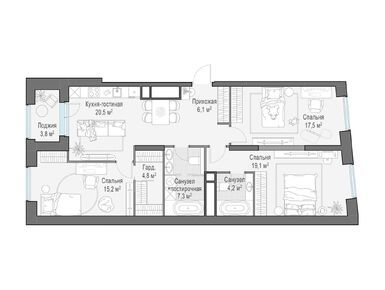 · просторные однокомнатные квартиры с альковом, который позволяет организовать приватную зону для сна или удобную гардеробную;