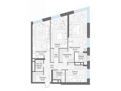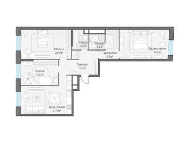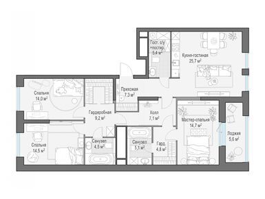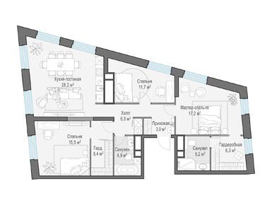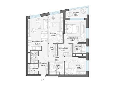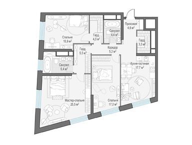Планировки четырехкомнатных квартир в Жилой квартал «Кутузов Град»