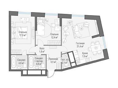 Планировки двухкомнатных квартир в Жилой квартал «Кутузов Град»