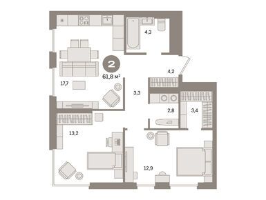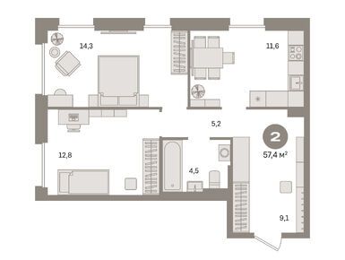 2. Планировки квартир для любого состава семьи, предчистовая отделка.