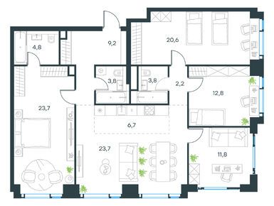 Для семейных покупателей построят детский сад и школу. Рядом с домами есть зеленая зона с рекой, и, конечно, застройщик не мог не воспользоваться таким преимуществом. Запланированы видовой мост, облагороженная набережная с выходом к природному заказнику «Долина реки Очаковки», спортивные площадки, места для отдыха с видом на парк. Также жители получат многоуровневый двор с вертикальной детской площадкой. Всего под благоустройство отдадут 4,7 гектара.