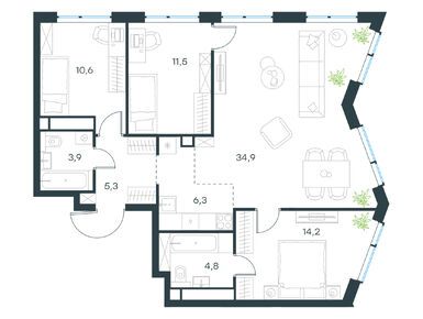 Жилой фонд ЖК «Level Мичуринский» представлен студиями, однокомнатными и многокомнатными квартирами, а также пентхаусами — всего более 50 планировочных решений. Есть варианты с окнами на 2 и даже 3 стороны света, с угловым остеклением, с мастер-спальнями, гардеробными, постирочными и кладовыми.