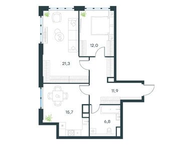 Планировки двухкомнатных помещений в Левел Южнопортовая