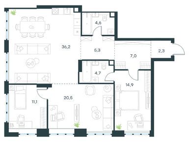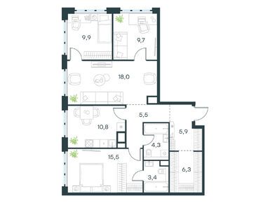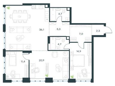 Планировки пятикомнатных квартир в Level Южнопортовая