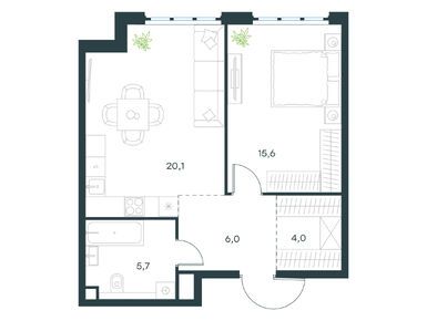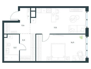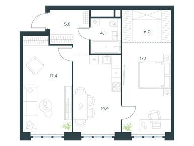 Планировки двухкомнатных помещений в Level Южнопортовая