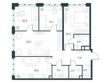 Планировки трехкомнатных помещений в Level Южнопортовая