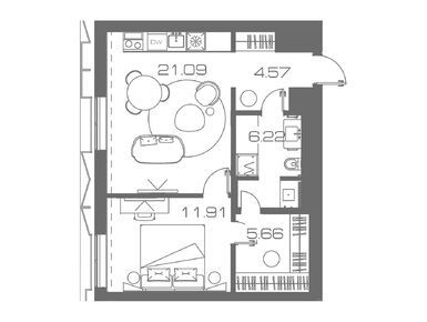 Планировки однокомнатных квартир в ЖК Lunar (Лунар)
