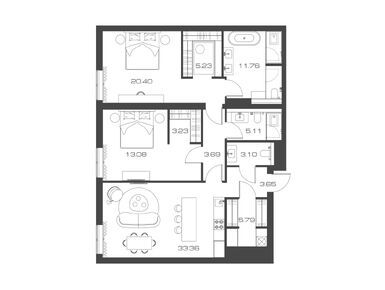 Планировки двухкомнатных квартир в ЖК Lunar (Лунар)