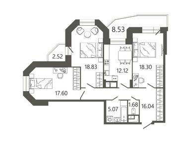 В доме представлены квартиры с одной, двумя и тремя комнатами площадью от 47 до 95 кв. метров. Сдаются они без отделки. Во всех квартирах есть балконы. Цены на недвижимость начинаются от 7,4 млн рублей за однокомнатную квартиру площадью 47,8 кв. м (данные на конец ноября 2024 года). Самый дорогой лот сейчас — трехкомнатная квартира площадью 94 кв. метра. Она продается за 13 млн рублей. Квартиры в новостройке можно приобрести в ипотеку.